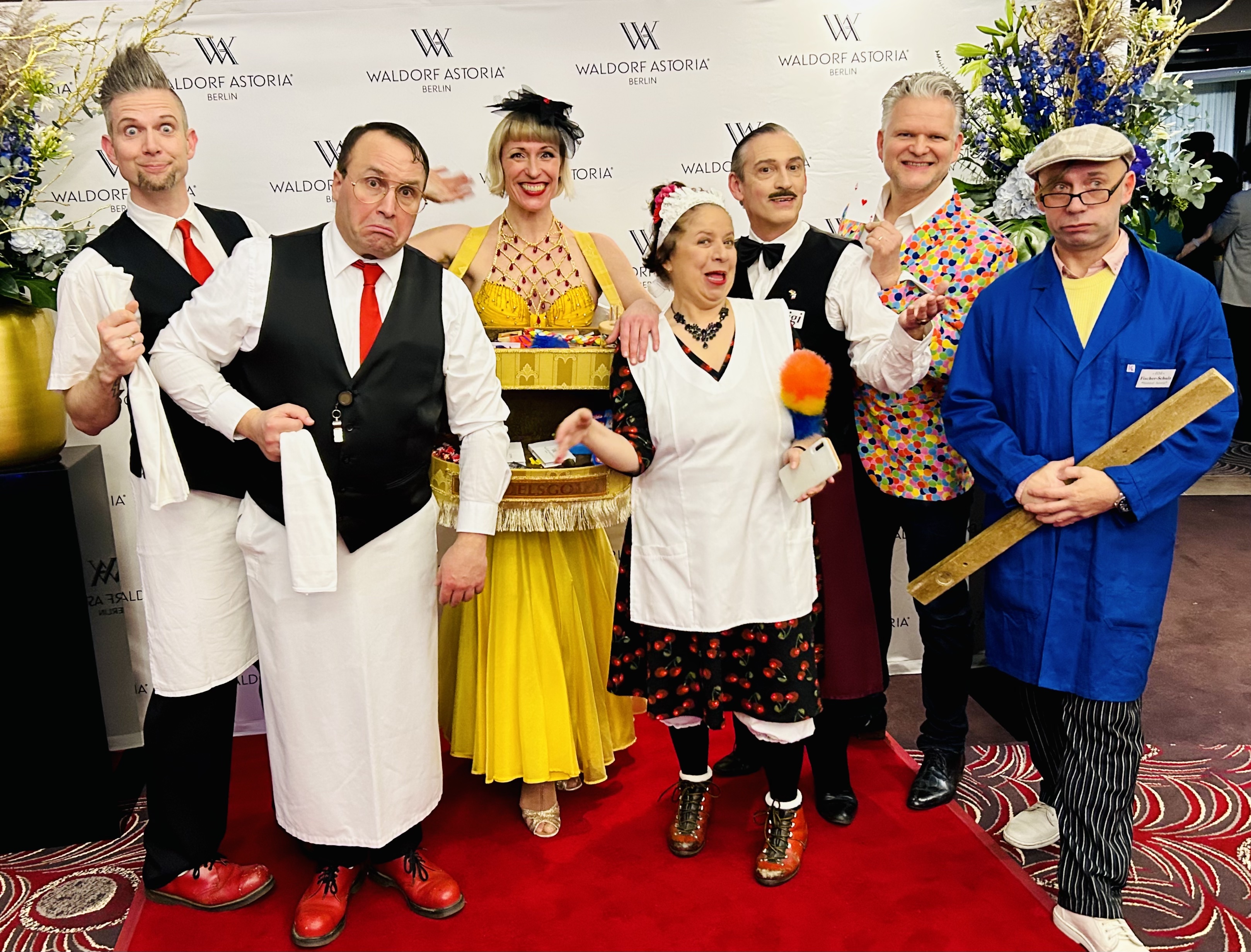 Darüberhinaus können alle Akteure im Laufe des Abends auch noch andere Rollen verkörpern, etwa die eines Komischen Empfangschefs, eines Comedy-Fotografen oder auch einer Lustigen Putzfrau.